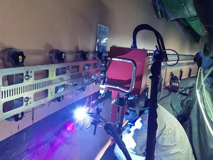 在三澳核電項目,智能激光跟蹤MAG自動焊技術覆蓋鋼襯里底板、筒體到穹頂車間預制和現場安裝的全流程系列化、多工況場景的全面應用,形成了具有完全自主知識產權的鋼襯里建造高效智能焊接先進技術體系,具有顯著的經濟社會效益。三澳核電一期項目累計焊縫長度約3763m,共拍片2930張,一次合格率為97.2%,焊接質量穩(wěn)定。
