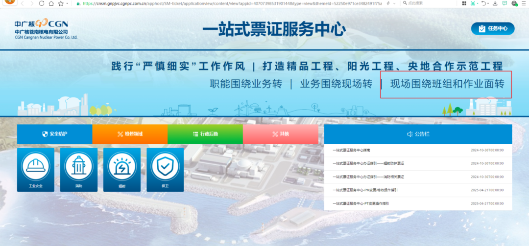 一站式票證服務中心已在三澳核電項目正式上線運行,該中心整合安全防護、維修領域、行政后勤等各領域審批類票證,實現首批 37 張生產票證電子化,解決了傳統(tǒng)票證分散、移動辦公不便、紙質化及新增票證上線難等痛點,逐步實現無紙化辦公。