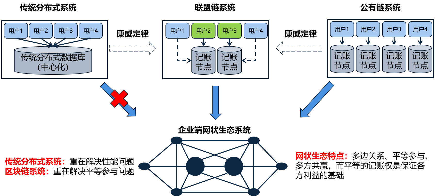 社會環(huán)境已經(jīng)從具有較強(qiáng)依附關(guān)系的中心化輻射狀生態(tài)結(jié)構(gòu)逐漸演進(jìn)至平臺化、多中心、自由協(xié)作的網(wǎng)狀體系,尤其是在企業(yè)端,根據(jù)康威定律,設(shè)計(jì)對象的組織結(jié)構(gòu)會映射到其系統(tǒng)結(jié)構(gòu),所以,符合多中心網(wǎng)狀生態(tài)特點(diǎn)的系統(tǒng)架構(gòu)必然會應(yīng)運(yùn)而生。傳統(tǒng)的分布式系統(tǒng)其誕生目的主要是為了提升系統(tǒng)性能,而區(qū)塊鏈系統(tǒng)則更多考慮了如何幫助用戶平等參與網(wǎng)絡(luò),這應(yīng)該是二者在設(shè)計(jì)理念上的核心差別,因此,區(qū)塊鏈系統(tǒng)比傳統(tǒng)的分布式系統(tǒng)更適于多方共贏生態(tài)環(huán)境的構(gòu)建。這個(gè)是看起來有點(diǎn)兒“務(wù)虛”,但是也有其道理的聯(lián)盟鏈的價(jià)值。公鏈的問題在于,如果現(xiàn)階段應(yīng)用,顯然不符合企業(yè)端生態(tài)的實(shí)際情況,企業(yè)端的生態(tài)環(huán)境即便你一開始沒設(shè)計(jì)中心也會自然產(chǎn)生中心,這是人的社會性決定的,所以也不要那么排斥所謂的“中心化”,鏡子中照出來的無論好不好看都是你自己,化妝不解決本質(zhì)問題。