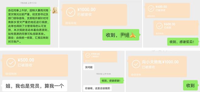 據(jù)悉,河南遭遇特大暴雨,多地發(fā)生嚴(yán)重洪澇災(zāi)害。河南省輝縣市常村鎮(zhèn)氈匠屯村遭受洪澇災(zāi)害,農(nóng)作物受災(zāi),經(jīng)濟(jì)受損,村民們生活與人身安全受到影響。這些天,國網(wǎng)信通產(chǎn)業(yè)集團(tuán)國電通規(guī)劃與計劃管理業(yè)務(wù)事業(yè)部黨支部黨員們每天都留意新聞報道,關(guān)注河南災(zāi)情,希望能為河南做點(diǎn)什么。得知輝縣市常村鎮(zhèn)氈匠屯村受災(zāi)情況后,迅速響應(yīng),通過河南籍員工與當(dāng)?shù)攸h組織取得聯(lián)系,發(fā)出捐款倡議。倡議一經(jīng)發(fā)出,便得到了黨支部黨員、發(fā)展對象和員工的積極參與,迅速募捐到了11800元善款。在輝縣市常村鎮(zhèn)氈匠屯村遭受洪災(zāi)的關(guān)鍵時刻,迅速將善款打給他們,為當(dāng)?shù)匕傩仗峁┰?/p>