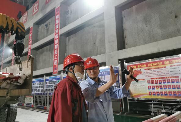 楊房溝水電站地廠工區(qū)常務副主任兼總工程師、黨員肖厚云(右)