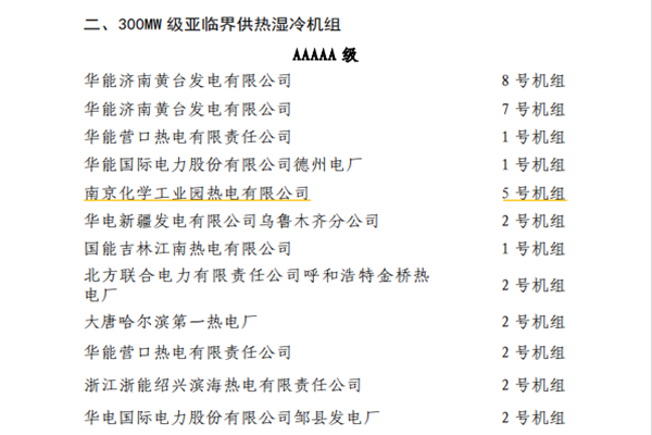 中國電力網(wǎng)訊 近日,中國電力企業(yè)聯(lián)合會公布2020年電力行業(yè)火電機(jī)組能效水平對標(biāo)結(jié)果,南京化學(xué)工業(yè)園熱電有限公司(以下簡稱公司)#5機(jī)組再次榮獲2020年度全國火電300MW級亞臨界供熱濕冷機(jī)組能效水平對標(biāo)競賽AAAAA級優(yōu)勝機(jī)組稱號,這已是公司連續(xù)五年獲此殊榮。