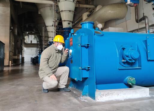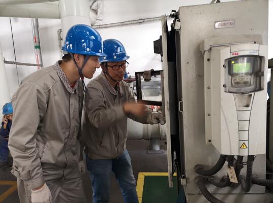 亓航正在該公司三號吸收塔B石膏排出泵排凈門檢修(圖:劉云龍)