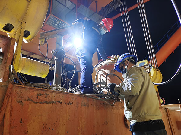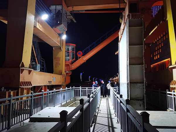 大功告成后,起重人員又開始愉快地“復(fù)工”了,檢修一行人來也匆匆、去也匆匆,一溜煙地消失在了漆黑的夜里,他們對故障的“當(dāng)頭一棒”,順利化解了“屋漏偏逢連夜雨,船遲又遇打頭風(fēng)”的尷尬局面。