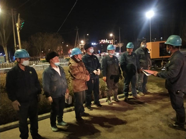 21時40分,一師電力公司副總經(jīng)理周豐江、發(fā)電技術(shù)部副部長王獻偉到現(xiàn)場查看搶修進度,并帶來搶修慰問品。公司副總經(jīng)理周豐江指出,現(xiàn)年關(guān)將近,在保證安全的前提下,阿拉爾熱力分公司搶修隊必須全力搶修,盡快使供熱運行恢復(fù)正常。讓市民過一個溫暖年、舒心年。