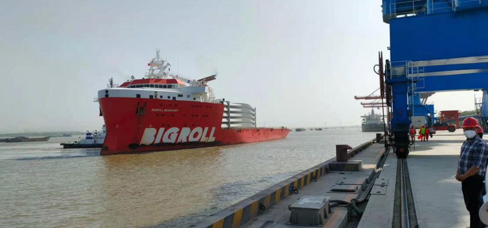 日前,全球航運(yùn)市場(chǎng)最大的風(fēng)電葉片輪“波弗特海”號(hào)順利靠泊揚(yáng)州港,計(jì)劃裝載120片風(fēng)電葉片出口至越南。據(jù)悉,此次裝載完成后,揚(yáng)州港將創(chuàng)下兩項(xiàng)“世界第一”,一是全球首次單船裝載風(fēng)電葉片達(dá)15萬立方米,二是全球首次單船裝載120個(gè)V150葉片。