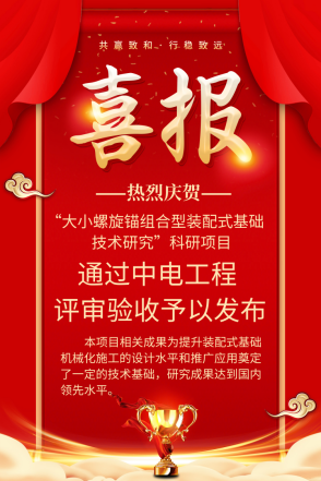 中國電力網(wǎng)訊 由中國能源建設集團遼寧電力勘測設計院有限公司自主研發(fā)的“大小螺旋錨組合型裝配式基礎(chǔ)技術(shù)研究”科研項目通過了中電工程評審驗收并于近日發(fā)布。