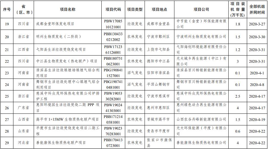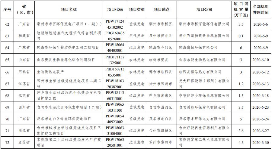 關(guān)于公布2020年生物質(zhì)發(fā)電中央補(bǔ)貼項目申報結(jié)果的通知