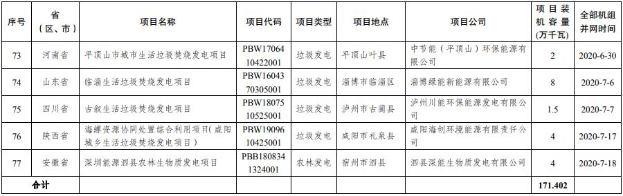 一、遵循公平、公正原則,經(jīng)委托國家可再生能源信息管理中心對各省(區(qū)、市)通過審核、公示無異議的項目進(jìn)行復(fù)核、匯總排序,擬將河北、山西等20個省(區(qū)、市)的77個項目納入2020年生物質(zhì)發(fā)電中央補(bǔ)貼規(guī)模,總裝機(jī)容量171.4萬千瓦,納入補(bǔ)貼范圍的項目所需補(bǔ)貼總額已達(dá)到2020年中央新增補(bǔ)貼資金額度15億元。其中,農(nóng)林生物質(zhì)發(fā)電項目18個、裝機(jī)容量53萬千瓦,垃圾焚燒發(fā)電項目46個、裝機(jī)容量116.3萬千瓦,沼氣發(fā)電項目13個,裝機(jī)2.1萬千瓦,具體結(jié)果見附件。