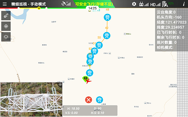 以往需要巡檢人員手動操作無人機進行巡檢工作,現(xiàn)在通過無人機自主巡檢系統(tǒng),可以實現(xiàn)管轄線路內(nèi)任意段的無人機自主飛行巡檢,巡檢人員一次性發(fā)出指令,無人機按照指令自主出發(fā)、自主巡檢、自主返回降落。在自主飛行過程中,畫面圖像會實時的回傳到地面操作平臺。巡檢人員進行軟件操作即可實現(xiàn)桿塔精細化巡視、樹障巡視、通道巡視、紅外測溫等其他巡視任務。以往需要人工視角或無人機視角來獲取線路通道情況,依靠的是人工主觀判斷,存在一定的誤判率。現(xiàn)在通過管控平臺進行三維點云數(shù)據(jù)處理,可以構成一個三維的模擬現(xiàn)場環(huán)境的電力線,精確的給出線樹距離、面積、體積等,并生成檢測報告,大大減少了不必要的工作。以往需要巡檢人員回到辦公地點進行巡視結果匯報,現(xiàn)在在現(xiàn)場通過巡檢專業(yè)移動終端上報至平臺系統(tǒng)即可完成工作匯報,管控人員通過平臺報表和預警合理的安排工作人員,極大的提升了工作效率。