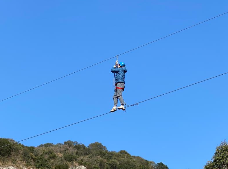 在飛拉達(dá)項(xiàng)目上,大家穿好防護(hù)裝置,在專業(yè)指導(dǎo)員的指導(dǎo)下,一點(diǎn)點(diǎn)攀上懸崖。大家循序漸進(jìn)的鍛煉膽量,在懸崖峭壁上行走的樂趣。讓所有恐懼隨著時(shí)間的推移和攀爬的動(dòng)力滿滿煙消云散。