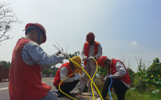 服務隊員正在對電纜分接箱電源進行接線安裝操作