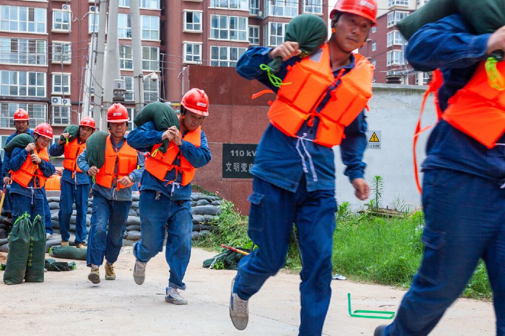 本次演練場景設(shè)置為滑縣遭受短時強降雨天氣,并伴有6到7級大風(fēng),降水量100-150mm,滑縣供電公司啟動防汛三級預(yù)警。110千伏變文明變電站電纜溝積水嚴(yán)重,站外雨水倒灌危機站內(nèi)設(shè)備安全運行。該公司防汛應(yīng)急指揮中心立即下令,組織人員趕赴變電站現(xiàn)場,加固防汛擋板,擺放水袋水泵進行電纜溝抽水,增加防汛沙袋快速封堵大門等工作有條不紊開展。在經(jīng)過快速的“防外、疏內(nèi)”后,變電站轉(zhuǎn)危為安,水位下降到正常水平。演練圓滿結(jié)束。