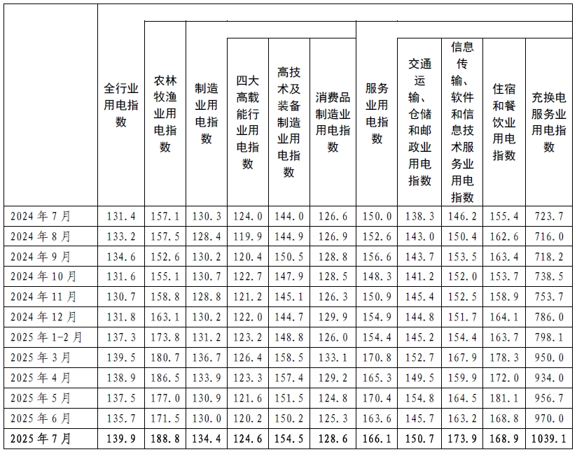 2025年7月,全國全行業(yè)用電指數(shù)為139.9,全行業(yè)用電量比2020年基期(以2020年基期為100)增長了39.9%,年均增長6.9%,同比增長6.5%,增速比上月提高1.9個百分點。