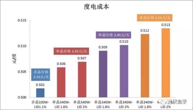2、如單、多晶系統(tǒng)度電成本持平,單晶組件每瓦價格比多晶組件的溢價不能超過0.02元/瓦,否則單晶系統(tǒng)的度電成本會高出多晶電站,太陽能電站的投資回報率也會相應(yīng)降低。