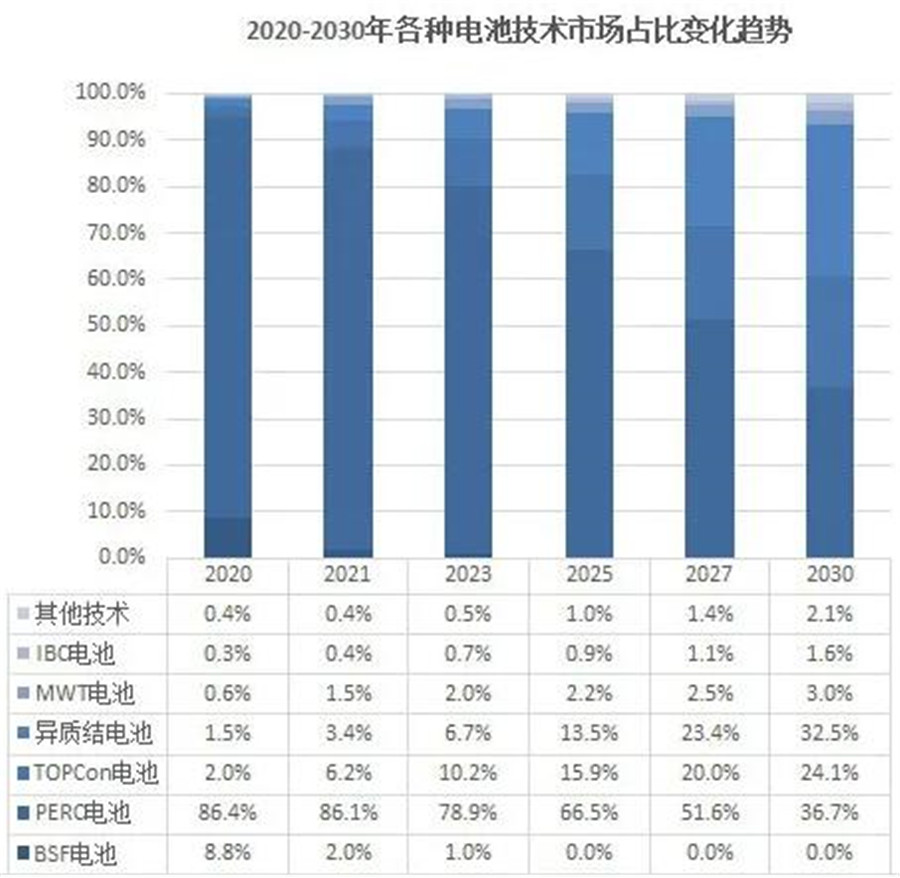根據(jù)光伏協(xié)會(huì)發(fā)布的《中國(guó)光伏產(chǎn)業(yè)發(fā)展路線圖2020》,到2025年,上述N型電池市占率將達(dá)32.5%。