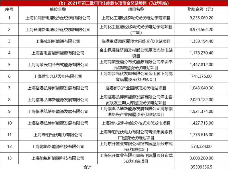 為促進本市可再生能源發(fā)展,推進節(jié)能減排和能源低碳轉(zhuǎn)型,根據(jù)《上海市可再生能源和新能源發(fā)展專項資金扶持辦法》(滬發(fā)改能源〔2016〕136號)、《上海市可再生能源和新能源發(fā)展專項資金扶持辦法(2020版)》(滬發(fā)改規(guī)范〔2020〕7號)、《關(guān)于做好2021年可再生能源和新能源發(fā)展專項資金扶持項目申報和獎勵資金申請工作的通知》(滬發(fā)改能源〔2021〕18號),市發(fā)展改革委組織開展了2021年度第二批可再生能源專項資金扶持項目撥付資金的核實確認工作。