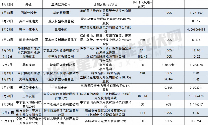 交易規(guī)模位列買方第二的是國家電投,年初至今,國家電投共進行12起光伏電站交易,收購總規(guī)模達到2875.34MW,交易總額80.14億元以上。國家電投與協(xié)鑫新能源間今年再次完成713.15MW光伏電站資產(chǎn)買賣,占國家電投今年收購總量的25%,交易金額6.69億元。