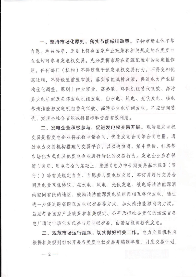 《通知》明確,要從五個(gè)方面穩(wěn)妥有序推進(jìn)電力市場(chǎng)建設(shè),大幅度提高電力市場(chǎng)化交易比重。一是堅(jiān)持市場(chǎng)化原則,落實(shí)節(jié)能減排政策。堅(jiān)持市場(chǎng)主體平等自愿、利益共享,原則上符合國(guó)家產(chǎn)業(yè)政策和相關(guān)規(guī)定的各類發(fā)電企業(yè)均可參與發(fā)電權(quán)交易。二是發(fā)電企業(yè)積極參與,促進(jìn)發(fā)電權(quán)交易開(kāi)展。現(xiàn)階段發(fā)電權(quán)交易是指發(fā)電企業(yè)將基數(shù)電量合同、優(yōu)先發(fā)電合同等合同電量,通過(guò)電力交易機(jī)構(gòu)搭建的交易平臺(tái),以雙邊協(xié)商、集中競(jìng)價(jià)、掛牌等市場(chǎng)化方式向其他發(fā)電企業(yè)進(jìn)行轉(zhuǎn)讓的交易行為。三是規(guī)范市場(chǎng)運(yùn)行組織,切實(shí)做好相關(guān)工作。電力交易機(jī)構(gòu)應(yīng)根據(jù)相關(guān)規(guī)則組織開(kāi)展各類發(fā)電權(quán)交易并編制年度、月度交易計(jì)劃,及時(shí)完成結(jié)算,做好電力交易信息披露等相關(guān)工作。四是持續(xù)完善交易規(guī)則,積極推進(jìn)市場(chǎng)建設(shè)。各地發(fā)電權(quán)交易應(yīng)與電力市場(chǎng)建設(shè)相關(guān)工作統(tǒng)籌考慮,做好發(fā)電權(quán)交易與優(yōu)先發(fā)電優(yōu)先購(gòu)電計(jì)劃以及其他電力交易品種之間的協(xié)調(diào)與銜接,原則上由清潔能源優(yōu)先發(fā)電計(jì)劃外電量替代火電基數(shù)電量。五是加強(qiáng)電力市場(chǎng)監(jiān)管,維護(hù)市場(chǎng)交易秩序。各派出能源監(jiān)管機(jī)構(gòu)要進(jìn)一步加強(qiáng)對(duì)發(fā)電權(quán)交易工作的綜合指導(dǎo),切實(shí)加強(qiáng)發(fā)電權(quán)交易監(jiān)管,維護(hù)公平公正的市場(chǎng)秩序。