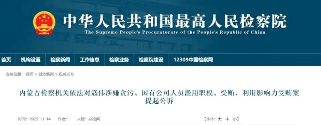 中國大唐集團有限公司原黨組副書記、總經(jīng)理寇偉涉嫌貪污、國有公司人員濫用職權(quán)、受賄、利用影響力受賄一案,由國家監(jiān)察委員會調(diào)查終結(jié),移送檢察機關(guān)審查起訴。最高人民檢察院依法以涉嫌貪污罪、國有公司人員濫用職權(quán)罪、受賄罪、利用影響力受賄罪對寇偉作出逮捕決定,并指定由內(nèi)蒙古自治區(qū)人民檢察院興安盟分院審查起訴。近日,內(nèi)蒙古自治區(qū)人民檢察院興安盟分院已向內(nèi)蒙古自治區(qū)興安盟中級人民法院提起公訴。