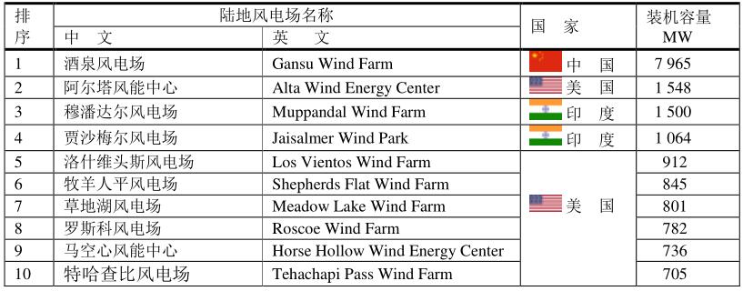 全球十大陸地風(fēng)電場