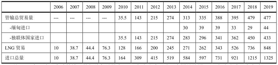 中國(guó)管輸進(jìn)口量(單位:億立方米)