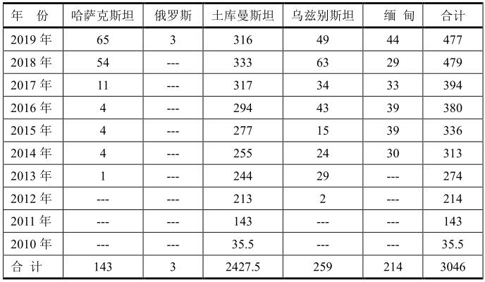 世界上天然氣儲(chǔ)量最多的國(guó)家是俄羅斯,土庫曼斯坦居世界第四位。中國(guó)管輸天然氣進(jìn)口依靠資源豐富的俄羅斯和中亞國(guó)家,最早的最重要的出口國(guó)是土庫曼斯坦,于2010年開始出口,到2019年總量已經(jīng)達(dá)到2427.5億立方米;其次是烏茲別斯坦、緬甸和哈薩克斯坦。俄羅斯從2019年也開始出口到中國(guó),而且將會(huì)逐年增加,成為管輸出口到中國(guó)最多的國(guó)家。