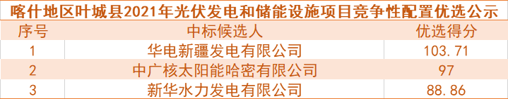 其中,喀什地區(qū)塔什庫(kù)爾干縣2021年50MW光伏發(fā)電和儲(chǔ)能設(shè)施項(xiàng)目競(jìng)爭(zhēng)性配置優(yōu)選候選人如下: