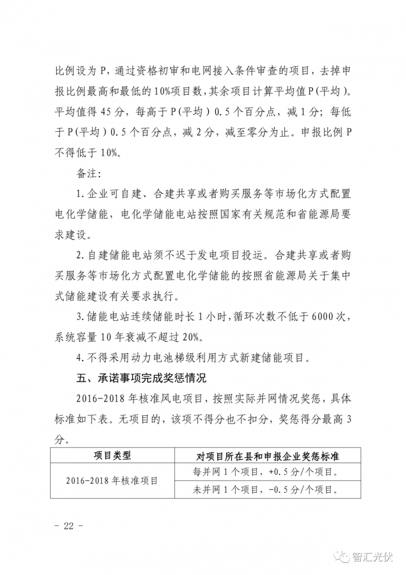 對(duì)于保障性規(guī)模,競爭性配置中未要求競電價(jià)、配置儲(chǔ)能項(xiàng)為45分,要求1小時(shí)、6000次。