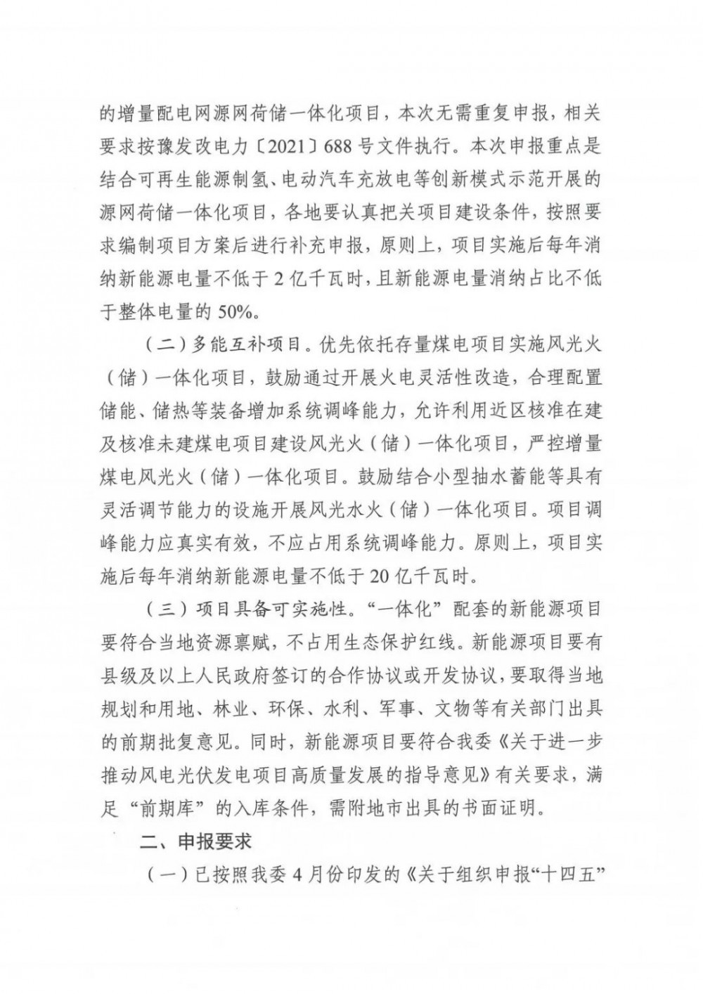 對于源網(wǎng)荷儲(chǔ)一體化項(xiàng)目,本次補(bǔ)充申報(bào)重點(diǎn)結(jié)合可再生能源制氫、電動(dòng)汽車充放電等創(chuàng)新模式示范開展的源網(wǎng)荷儲(chǔ)一體化項(xiàng)目,各地要認(rèn)真把關(guān)項(xiàng)目建設(shè)條件,按照要求編制項(xiàng)目方案后進(jìn)行補(bǔ)充申報(bào),原則上,項(xiàng)目實(shí)施后每年消納新能源電量不低于2億千瓦時(shí),且新能源電量消納占比不低于整體電量的50%。