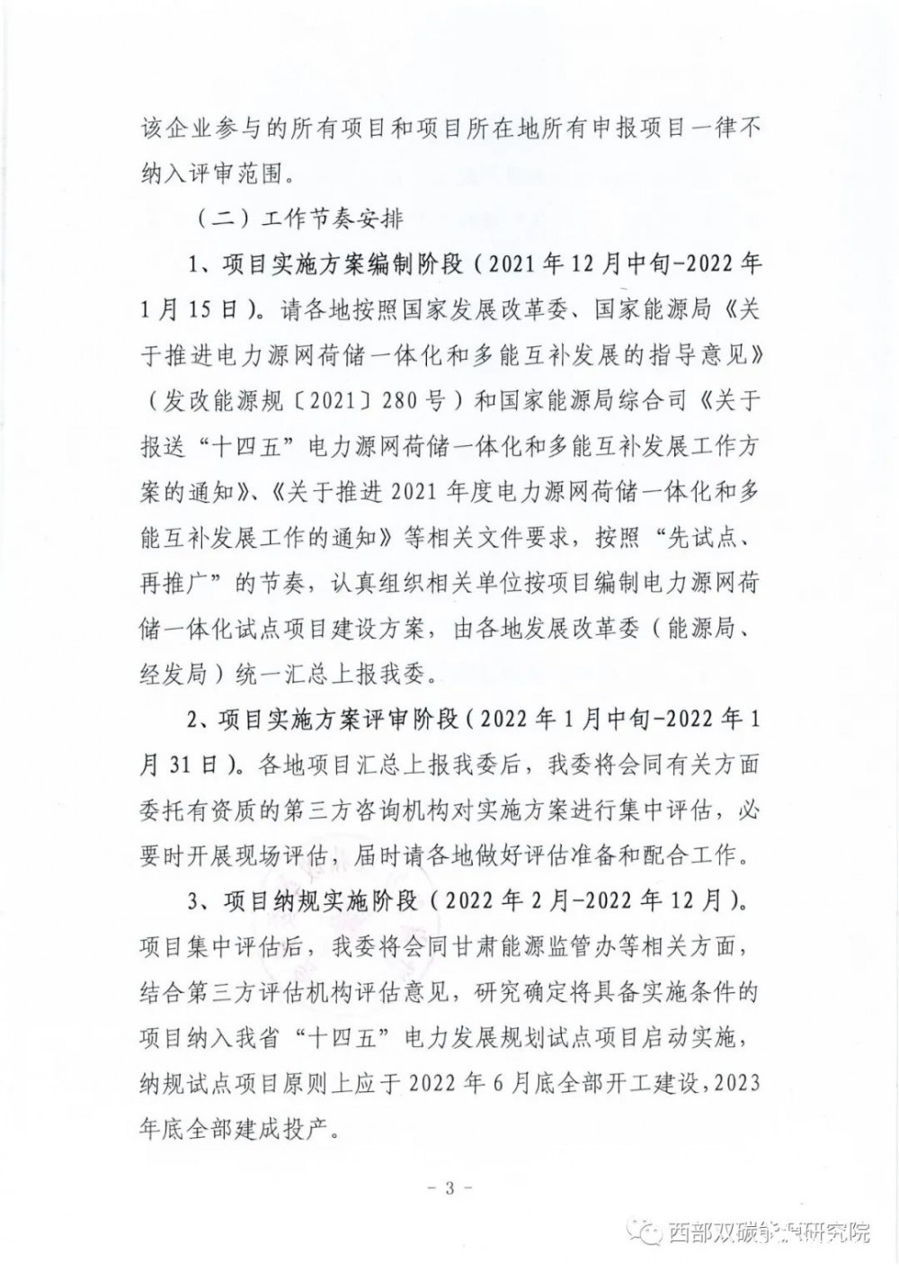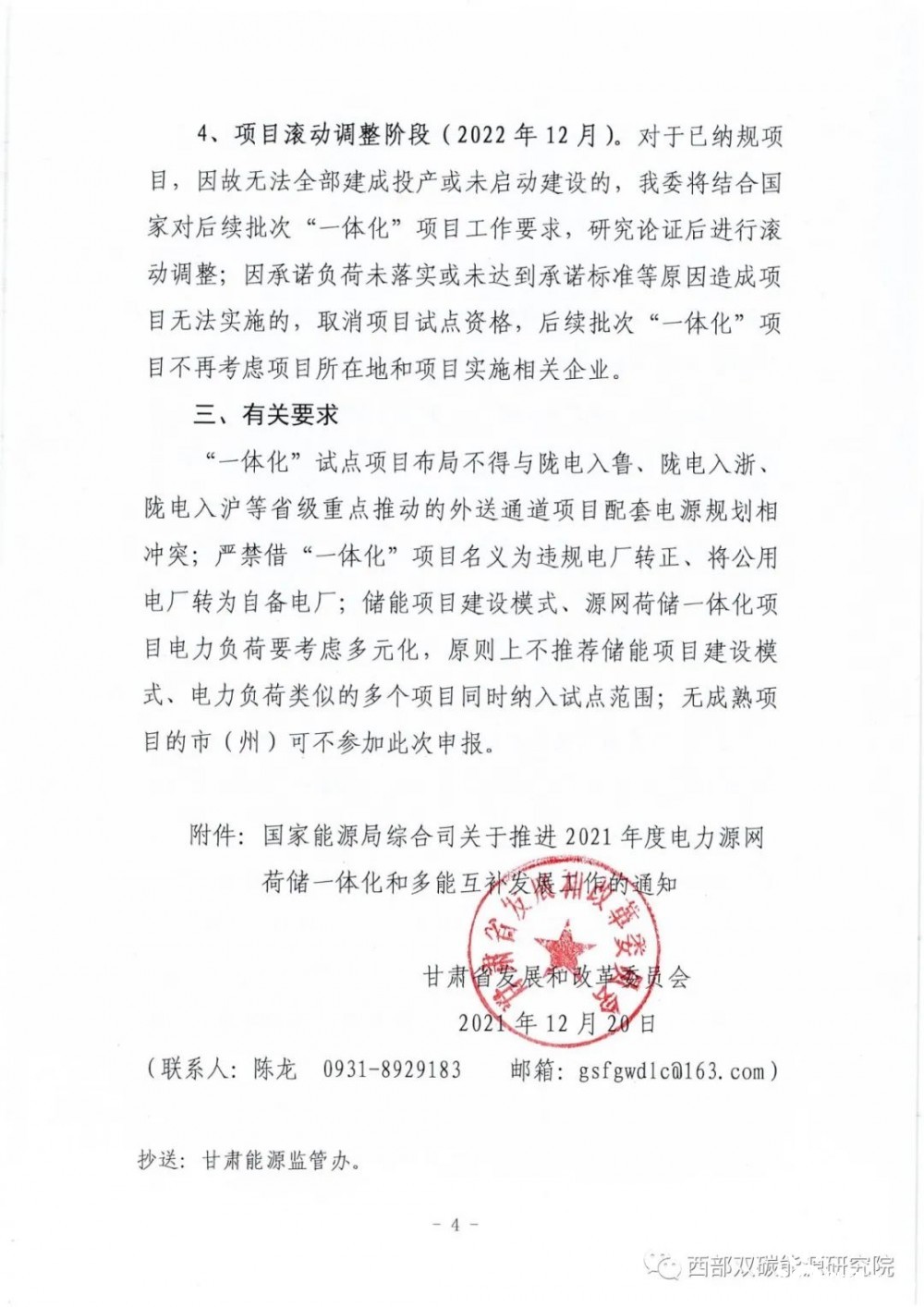 12月20日,甘肅省發(fā)改委印發(fā)《關(guān)于組織申報“十四五”電力源網(wǎng)荷儲一體化和多功能互補(bǔ)發(fā)展首批試點(diǎn)項(xiàng)目的通知》,就項(xiàng)目申報有關(guān)事項(xiàng)給出具體指導(dǎo)。
