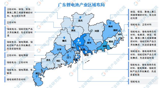近年,廣東省不斷優(yōu)化鋰電池產(chǎn)業(yè)區(qū)域布局,重點(diǎn)建設(shè)珠江口東岸儲能電池產(chǎn)業(yè)集聚區(qū),珠江口西岸儲能電池產(chǎn)業(yè)集聚區(qū),正極材料集聚區(qū),鋰電硅碳負(fù)極材料集聚區(qū),鋰電隔膜生產(chǎn)制造基地,電解液專業(yè)園區(qū),銅箔、鋁箔、聚偏二氟乙烯膜等輔助材料集聚區(qū),儲能控制產(chǎn)品及系統(tǒng)集成、先進(jìn)裝備制造集聚區(qū),電池回收利用產(chǎn)業(yè)集聚區(qū)等。