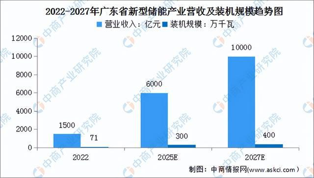 儲能是新型電力系統(tǒng)的重要組成部分,在“雙碳”目標(biāo)下,廣東省新型儲能產(chǎn)業(yè)具有良好發(fā)展前景。數(shù)據(jù)顯示,2022年廣東省新型儲能產(chǎn)業(yè)營業(yè)收入約1500億元,裝機(jī)規(guī)模達(dá)到71萬千瓦。預(yù)計(jì)到2025年,廣東省新型儲能產(chǎn)業(yè)營業(yè)收入達(dá)到6000億元,年均增長50%以上,裝機(jī)規(guī)模達(dá)到300萬千瓦;到2027年,廣東省新型儲能產(chǎn)業(yè)營業(yè)收入達(dá)到1萬億元,裝機(jī)規(guī)模達(dá)到400萬千瓦。