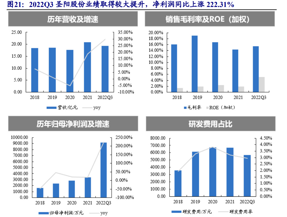 圣陽股份是國內(nèi)最早自主研發(fā)和生產(chǎn)閥控密封式鉛酸蓄電池的企業(yè)之一,為國 際先進(jìn)鉛酸蓄電池聯(lián)合會(huì)(ALABC)成員、中國電池工業(yè)協(xié)會(huì)常務(wù)理事單位、中國電 器工業(yè)協(xié)會(huì)鉛酸蓄電池分會(huì)理事單位、中國照明學(xué)會(huì)新能源照明專委會(huì)會(huì)員、中國 電源學(xué)會(huì)會(huì)員等。圣陽股份是山東省第一批高新技術(shù)企業(yè),擁有山東省人民政府認(rèn) 定的企業(yè)技術(shù)中心和山東省科技廳認(rèn)定的高能環(huán)保鉛酸蓄電池工程技術(shù)研究中心, 擁有多項(xiàng)核心技術(shù)。 財(cái)務(wù)方面,2022Q3 圣陽股份業(yè)績?nèi)〉幂^大提升,營業(yè)收入達(dá)到 19.32 億元同比 上漲 29.66%;凈利潤達(dá)到 9155.12 萬元同比上漲 222.31%。