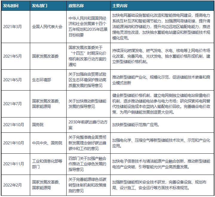 我國(guó)新型儲(chǔ)能行業(yè)相關(guān)政策