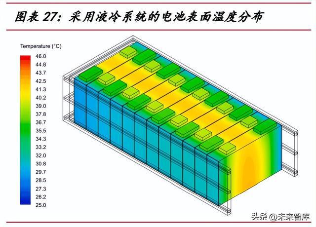 液冷系統(tǒng)具備更強的溫度控制精度,進而延長電池壽命。綜合各廠商的宣傳口徑, 風冷機組可將儲能系統(tǒng)內(nèi)的溫差控制在 5-10℃左右,而采用液冷機組可將溫差降低 至 2-3℃的水平,顯著提高電池充放電過程中的均一性,并有望較風冷系統(tǒng)延長 2 年 以上的電池使用壽命。