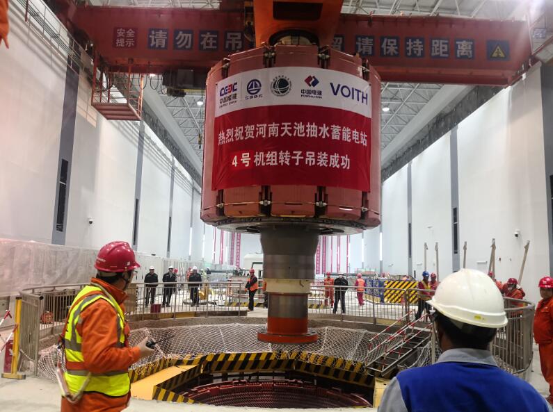 3月29日,由中國能建葛洲壩機電公司承擔機電安裝與調(diào)試任務(wù)的,河南天池抽水蓄能電站最后一臺機組4號機組轉(zhuǎn)子吊裝就位,電站開啟全面發(fā)電倒計時。