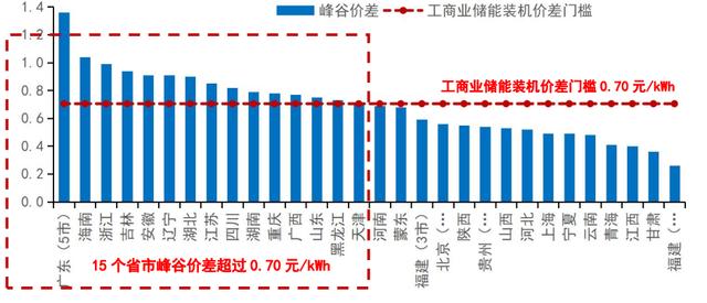 據(jù)中關(guān)村儲能產(chǎn)業(yè)技術(shù)聯(lián)盟統(tǒng)計,2023年4月全國各地代理電價峰谷價差均值為0.69元/KWh,稍低于2022全年均值0.70/kWh和2023年3月均值0.72/kWh;已有15個地區(qū)峰谷價差達到工商業(yè)儲能實現(xiàn)經(jīng)濟性的門檻價差0.70元/kWh,較2023年3月,蒙東、河南、江西三地價差下降至0.70元/kWh以下。本月價差最大的地區(qū)是廣東省珠三角五市1.36元/kWh,創(chuàng)下了全國執(zhí)行電網(wǎng)代購電以來最大價差的紀錄;對比2023年3月來看,價差下降幅度最大的地區(qū)是江西,從3月的0.70元/kWh降至0.40元/kWh。
