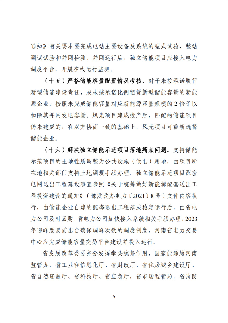 省財(cái)政廳、工業(yè)和信息化廳、住房城鄉(xiāng)建設(shè)廳、自然資源廳應(yīng)急廳,省市場監(jiān)管局,省消防總隊(duì),國家能源局河南監(jiān)管辦省電力公司,各省轄市發(fā)展改革委,濟(jì)源示范區(qū)發(fā)改統(tǒng)計(jì)局,鄭州航空港區(qū)經(jīng)濟(jì)發(fā)展局,華能、大唐、華電、國家電投、國家能源河南(分)公司,華潤中西大區(qū)、華晨電力河南公司、省投資集團(tuán),中廣核新能源公司,中核匯能,三峽河南公司比亞迪弗迪電池有限公司、開封時(shí)代、寧德時(shí)代等有關(guān)企業(yè):按照省政府要求,為推動我省新型儲能產(chǎn)業(yè)規(guī)?;哔|(zhì)量發(fā)展,我委研究制定了《加快我省新型儲能發(fā)展的實(shí)施意見》現(xiàn)征求貴單位意見,由于時(shí)間緊急,請貴單位盡快研究反饋,意見經(jīng)加蓋公章后于4月28日前反饋我委,電子版發(fā)送郵箱hnnyc@163.com,無修改意見也請正式反饋。