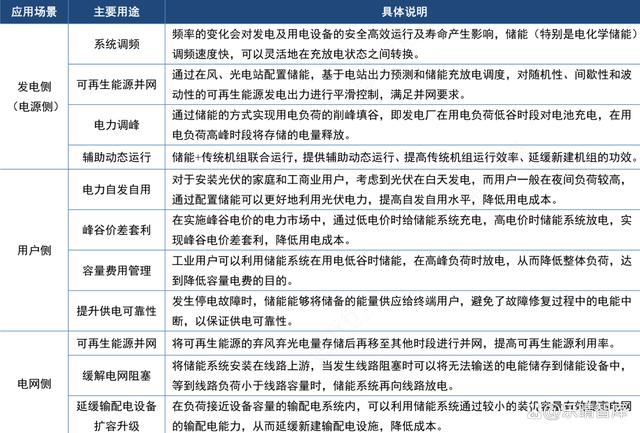 發(fā)電側可用于系統(tǒng)調頻、可再生能源并網(wǎng)、電力調峰、輔助動態(tài)運行等;在用戶側主要用于電力自發(fā)自用、峰谷價差套利、容量電費管理和提升供電可靠性等;在電網(wǎng)側主要用于可再生能源并網(wǎng)、緩解電網(wǎng)阻塞、延緩輸配電設備擴容升級等。