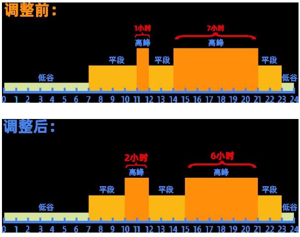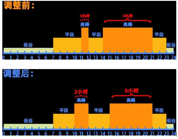 調(diào)整尖峰電價時間,尖峰電價執(zhí)行范圍不變
