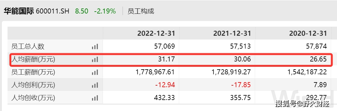 華能?chē)?guó)際薪酬總額大約178億元,人均薪酬超過(guò)31萬(wàn)元,比2021年的30萬(wàn)元又增加1萬(wàn)元;2020年人均薪酬大約26.7萬(wàn)元。