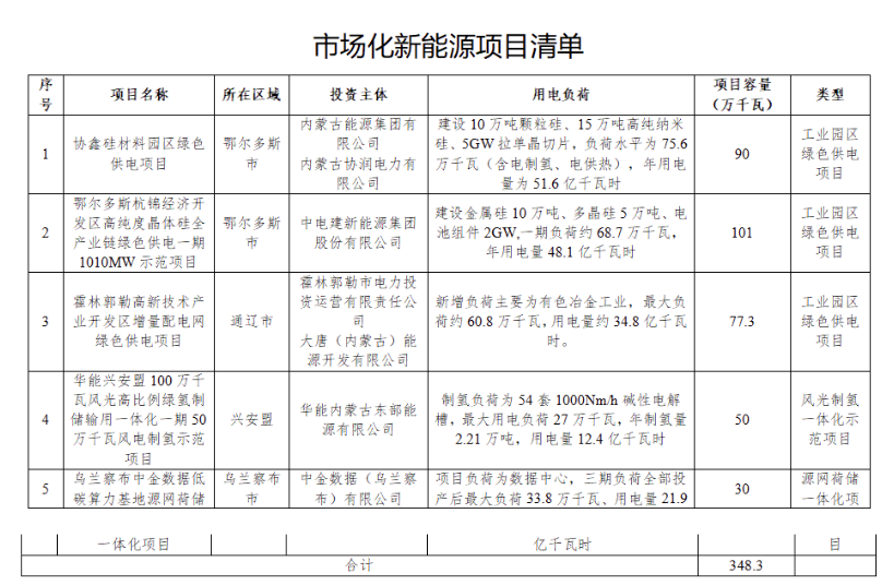內(nèi)蒙古自治區(qū)能源局關(guān)于印發(fā)5個(gè)市場(chǎng)化新能源項(xiàng)目清單的通知