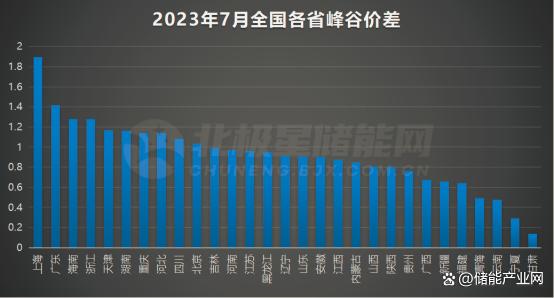 2023年7月全國(guó)各省日峰谷價(jià)差如下圖所示: