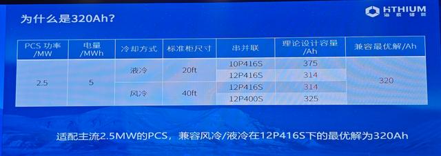 海辰儲能測算后,最合適的方案是一個12組、460串,折算下來就是314Ah就能達(dá)到這個實現(xiàn)?;诖?,適配2.5MW的逆變器最優(yōu)解的方式是把原來的280Ah容量升級為320Ah。