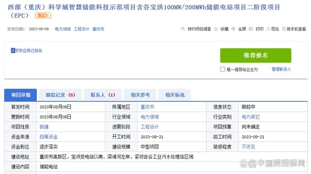 西部(重慶)科學(xué)城智慧儲能科技示范項(xiàng)目含谷寶洪100MW/200MWh儲能電站項(xiàng)目二階段項(xiàng)目(EPC),建設(shè)地點(diǎn)位于重慶市高新區(qū),寶洪變電站以南、梁灘河左岸,緊鄰含谷工業(yè)污水處理站區(qū)域,資金來源為企業(yè)自籌,資金已落實(shí),項(xiàng)目規(guī)劃裝機(jī)規(guī)模100MW/200MWh,工期:30天,計(jì)劃開始日期:2023年08月21日。