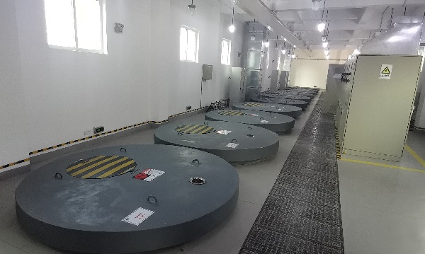 距離儲能電站不遠的飛輪儲能項目,是國內(nèi)首個投入運行的與百萬千瓦級中間二次再熱火電機組聯(lián)合調(diào)頻項目,也是國內(nèi)首個室內(nèi)飛輪儲能項目。記者在廠房看到,10個直徑2米左右的井蓋依次排列,打開地井就看到了外形類似豎立大桶的磁懸浮飛輪儲能裝置。