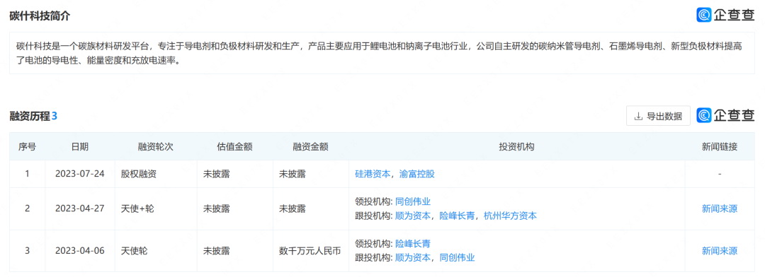 今年4月,順為資本投資碳什科技。碳什科技是一個(gè)碳族材料研發(fā)平臺(tái),專注于導(dǎo)電劑和負(fù)極材料研發(fā)和生產(chǎn),產(chǎn)品主要應(yīng)用于鋰電池和鈉離子電池行業(yè)。