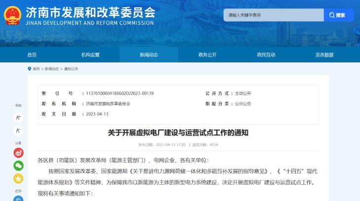 濟南開展虛擬電廠建設運營試點工作 來源:濟南市發(fā)改委