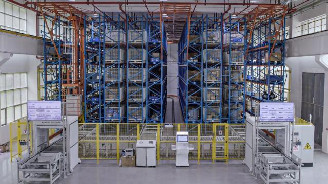 為了更好地提升倉內空間利用率,在進行現場測量與規(guī)劃后,京東物流通過投入使用堆垛機、智能升降貨柜、料箱AGV等智能設備為其進行了一系列軟硬件改造升級,最大程度利用場地空間,建設超萬個儲位,儲位最高可放置重量達1000公斤的物資。與此同時,京東物流還全面利用人臉識別技術,語音播報、燈光指引、智能墨水屏、重力式感應貨架等硬件,部署智能軟件系統(tǒng),實現24小時無人化值守,提高領料效率,確保安全生產。
